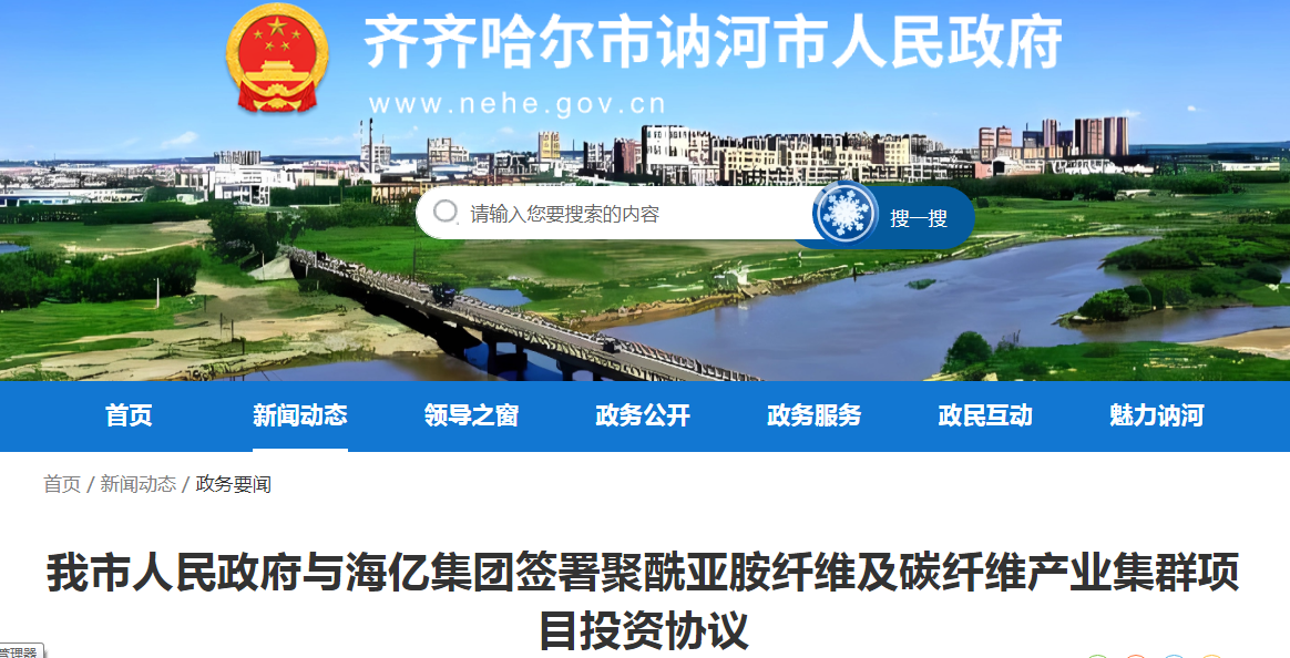 6月3日,根據(jù)齊齊哈爾市訥河市政府網(wǎng)站發(fā)布的最新消息顯示,訥河市政府市政府與海億科技產(chǎn)業(yè)集團(tuán)有限公司(以下簡稱“海億科技”)已于6月1日簽署了聚酰亞胺纖維及碳纖維產(chǎn)業(yè)集群項目投資協(xié)議,項目總投資110億元,一期投資55億元,建成年產(chǎn)2萬噸聚酰亞胺纖維項目;二期投資55億元建成年產(chǎn)2.4萬噸聚丙烯腈基高性能碳纖維項目,進(jìn)一步推動企業(yè)和訥河經(jīng)濟(jì)高質(zhì)量發(fā)展。