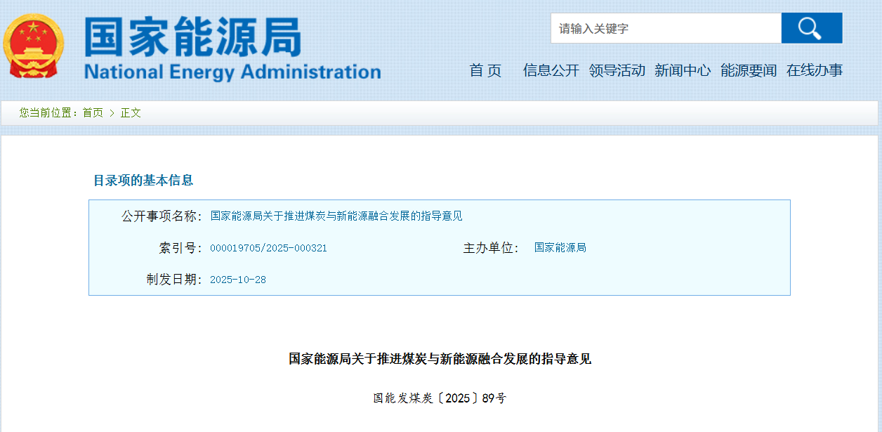 國家能源局關(guān)于推進(jìn)煤炭與新能源融合發(fā)展的指導(dǎo)意見
